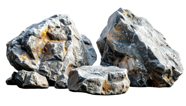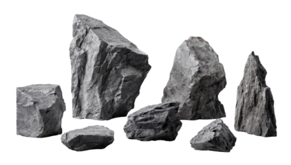 Gray rocks positioned side by side on transparent backdrop, ideal for digital artwork and graphic design compositions