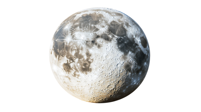 Moon on transparent background, lunar surface, gray and white