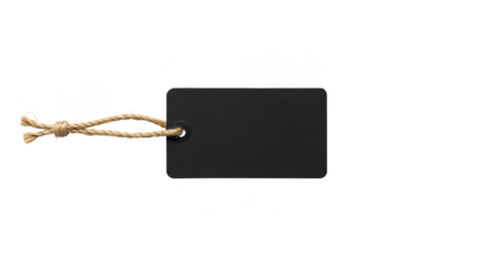 Isolated Product Tag with Black Rectangle and String on Transparent