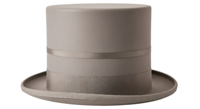 Vintage weathered gray top hat with holes and worn band, representing historical artifact, old fashion, and period style