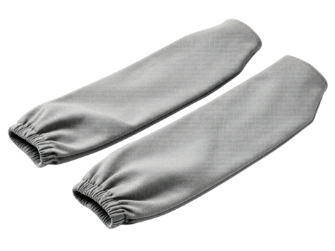 Protective gray fabric arm sleeves for cleaning or industrial use on a transparent background