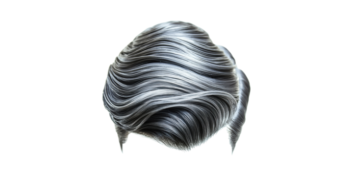 Gray curly hair wig, isolated with transparent background for graphics.