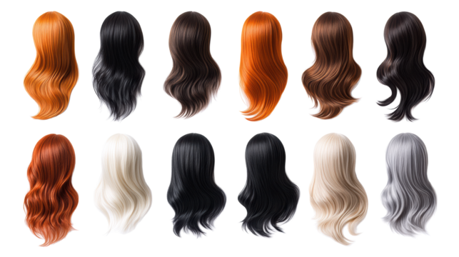 Studio Shot of Curly Ombre Wig Hair isolated on solid white background Png