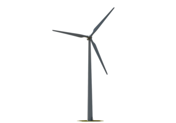 Simple graphic of a wind turbine, light gray blades on a gray pole