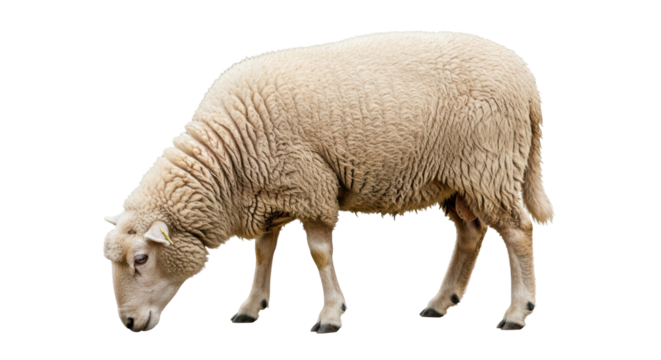 Dairy cow grazing peacefully on fresh green grass against a clean, isolated backdrop