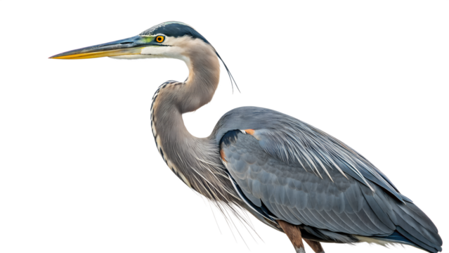 Great Blue Heron Standing Alone by the Water’s Edge, Side View, isolated on a transparent background