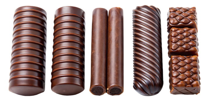 set of chocolate tubes isolated on white background  , AI GENERATED