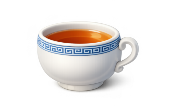 Elegant porcelain teacup with greek key design on gray background for kitchen decor