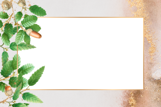 Botanical frame png oak leaf branches pattern border