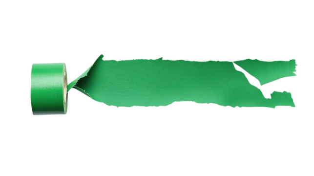 Green adhesive torn masking tape pieces isolated on a transparent background, Green Adhesive Tape Strip Torn Isolated on White Background,