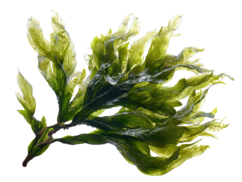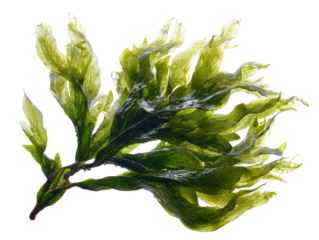 Green seaweed with flowing leaves on a white background