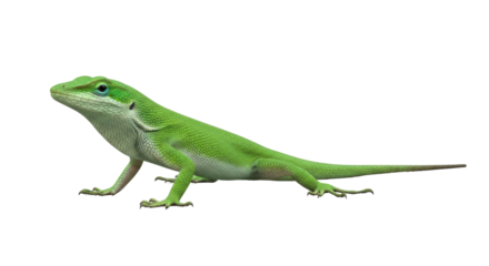 Green anole lizard isolated on transparent background, a common reptile found in the southeastern united states