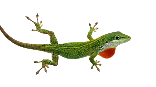 Full‑body high‑resolution anole lizard illustration isolated on transparent background, exhibiting realistic scale texture, perfect PNG cutout for wildlife education, herpetology infographics