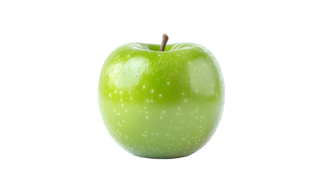 Fresh green apple with water droplets close-up photography, fruit still life, healthy eating, isolated on transparent background