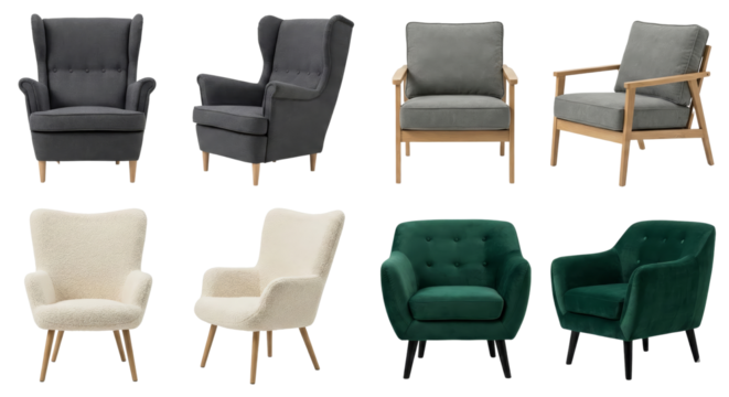 Stylish green armchairs on a transparent background furniture showcase