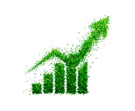 Environmental growth concept with green arrow and bar graph on transparent background, PNG