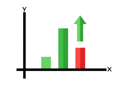 Colorful bar graph showing upward trend with a green arrow indicating growth, isolated on transparent background