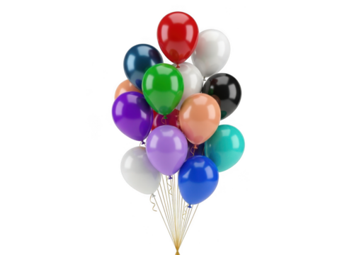 Vibrant colorful balloons floating against a bright white background for celebrations and joy isolated on transparent background