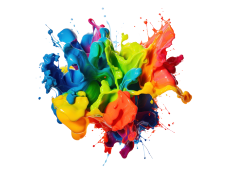 3D volumetric explosion blot of multi-colored paint in air or liquid water, png file of isolated cutout object on transparent background.