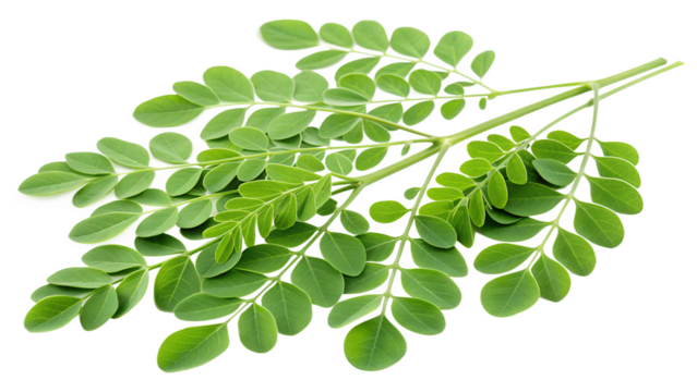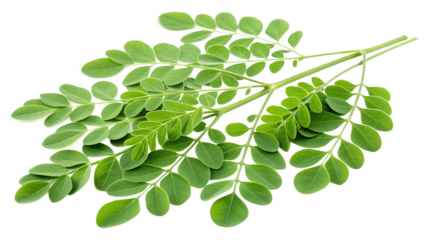 Fresh Vibrant Green Moringa Leaves isolated on transparent background