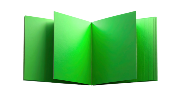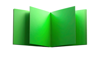 Open Green Book with Blank Pages on Transparent Background