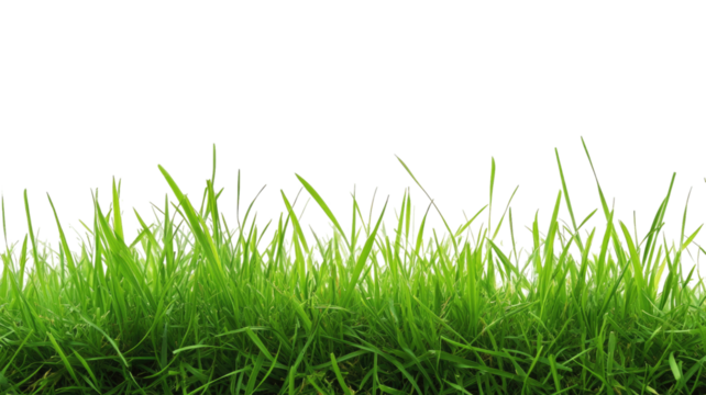 Lush, vibrant green border of tall, slender grass blades gently swaying, isolated against a transparent background with studio lighting, sharp focus, high contrast. Concept of natural vitality and