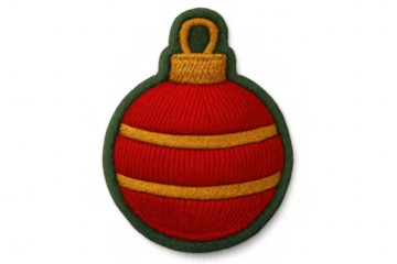 Christmas ornament embroidered patch design featuring festive red and gold yarn with green border