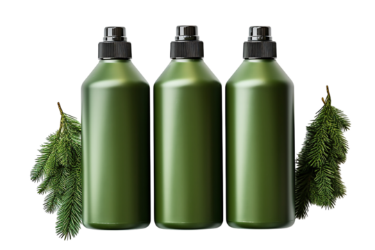 Collection of three green beer bottles isolated on a transparent background, ideal for Oktoberfest or party celebration themes