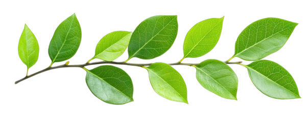 A vibrant green branch with several fresh leaves, isolated on a clean transparent background