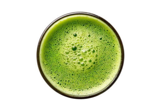 Top-down view of vibrant green matcha tea