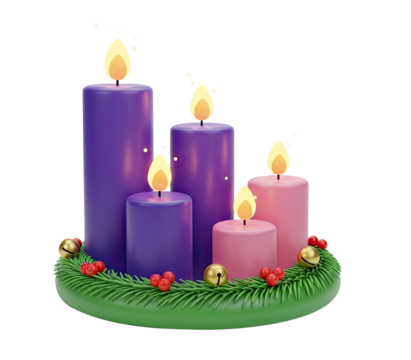 Festive red and green candles burning brightly creating a warm Christmas ambiance with frosted on transparent background