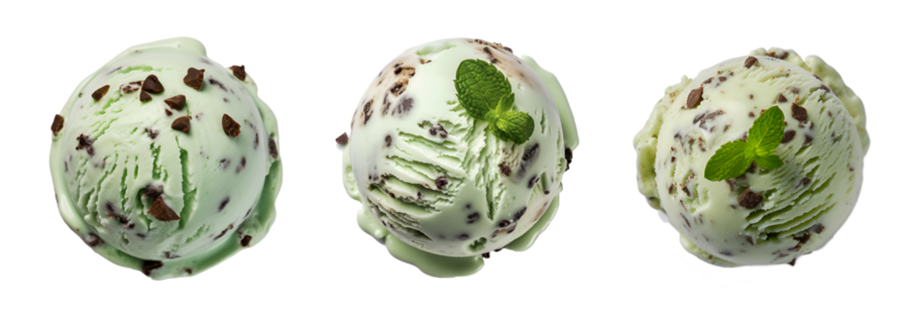 Mint Chocolate Chip Ice Cream scoop isolated Background