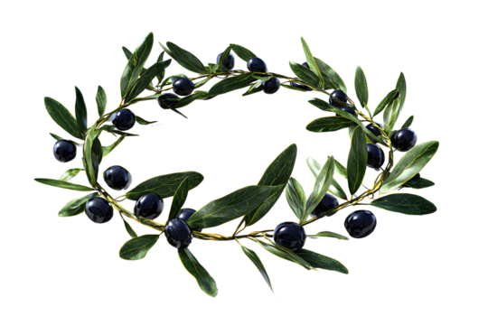 Multiple olive branches arranged in a circular pattern, isolated on transparent background.