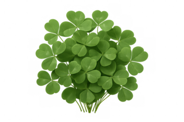 Lush green clovers forming a vibrant bush, isolated on a transparent background, perfect for nature-themed projects