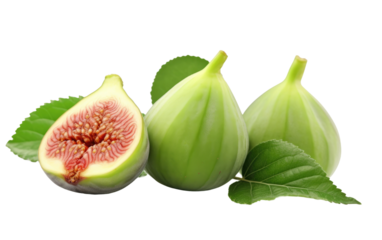 figs green color ripe and cut on white or PNG transparent background.