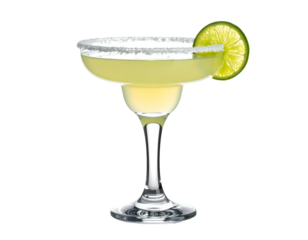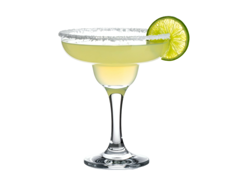 Salty rim coupe glass with pale yellow drink and lime