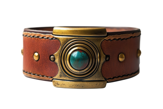 Handmade rustic leather bracelet with antique brass focal and genuine on transparent background