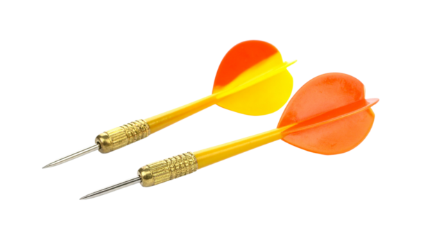 Green darts with smooth plastic fins, textured slim shafts, and sharp metal tips, representing accuracy, focus, and competitive sports isolated on white or transparent background. PNG format.