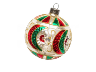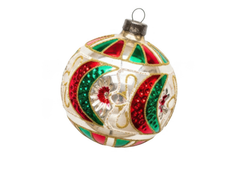 Glass Christmas Ornament with Red and Green Design, isolated on transparent cutout background