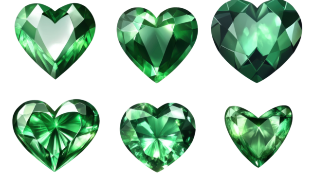 Sparkling colorful gemstones, diverse cuts, isolated on transparent background.
