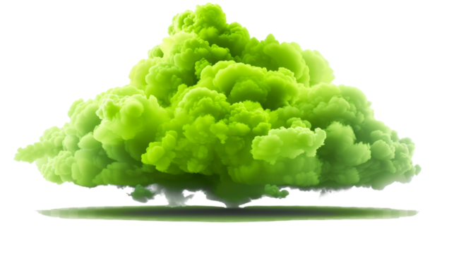 Green Smoke Cloud, Abstract, Isolated on White Background, PNG File