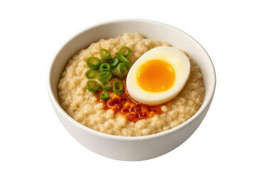 Heap of spicy fried noodles or mie goreng topped with green onions and fried shallots isolated on transparent background