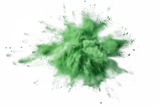 bright green holi paint color powder festival explosion burst isolated  white background. industrial print concept background