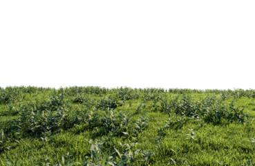 A vast, rolling green field of grass under a bright white sky, suggesting nature, agriculture, and open space, isolated on a transparent background