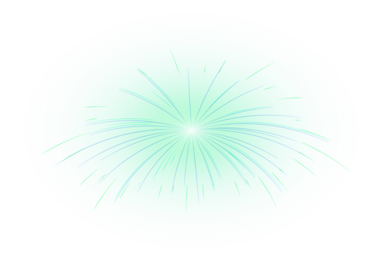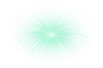 Bright green fireworks display featuring luminous neon-green bursts, glowing spark clouds, and vibrant celebration trails ideal for festive illustrations, transparent overlays, and holiday event artwo