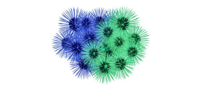 Fireworks in green, white, and gold stylized display isolated on transparent background