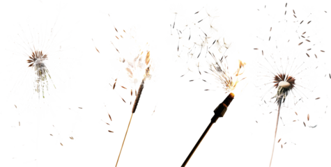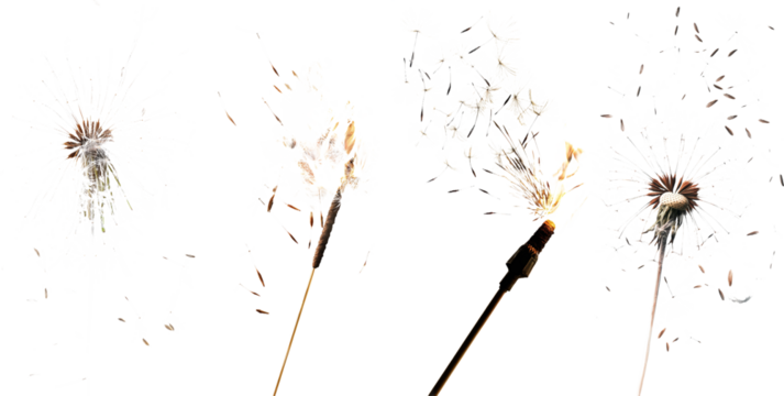 Sparkler held in hand with smoke and sparks isolated on a transparent background