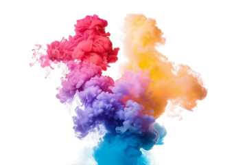 Bright smoke bomb in different colors isolated on transparent background