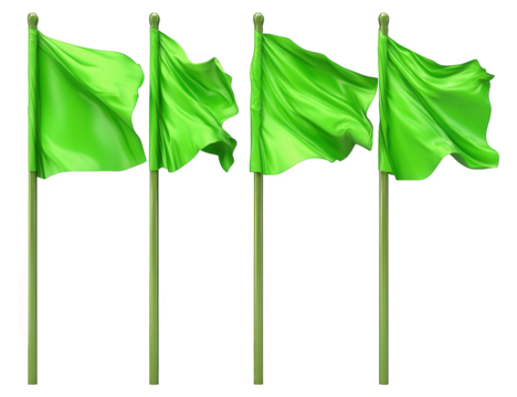 Overlapping Green Flags Waving with Realistic Cloth Texture, Minimalist Isolated View