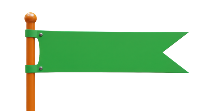 Stylish Green Flag on a Wooden Stick with a Fabric Texture. Isolated on a Transparent Background